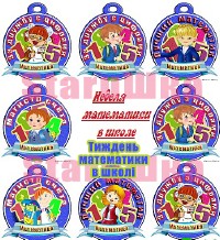 Назва: Тиждень математики в школі: медалі для нагородження (українською та російською) Рік: 2013 Сторінок: 6 Формат|Якість: jpeg Розмір: 23 мб в архіві 6 медалей: "Лучший математик" ("Кращий математик"), "Магистр счёта" ("Магістр рахунку"), "За дружбу с цифрами" для дівчаток та хлопчиків. |